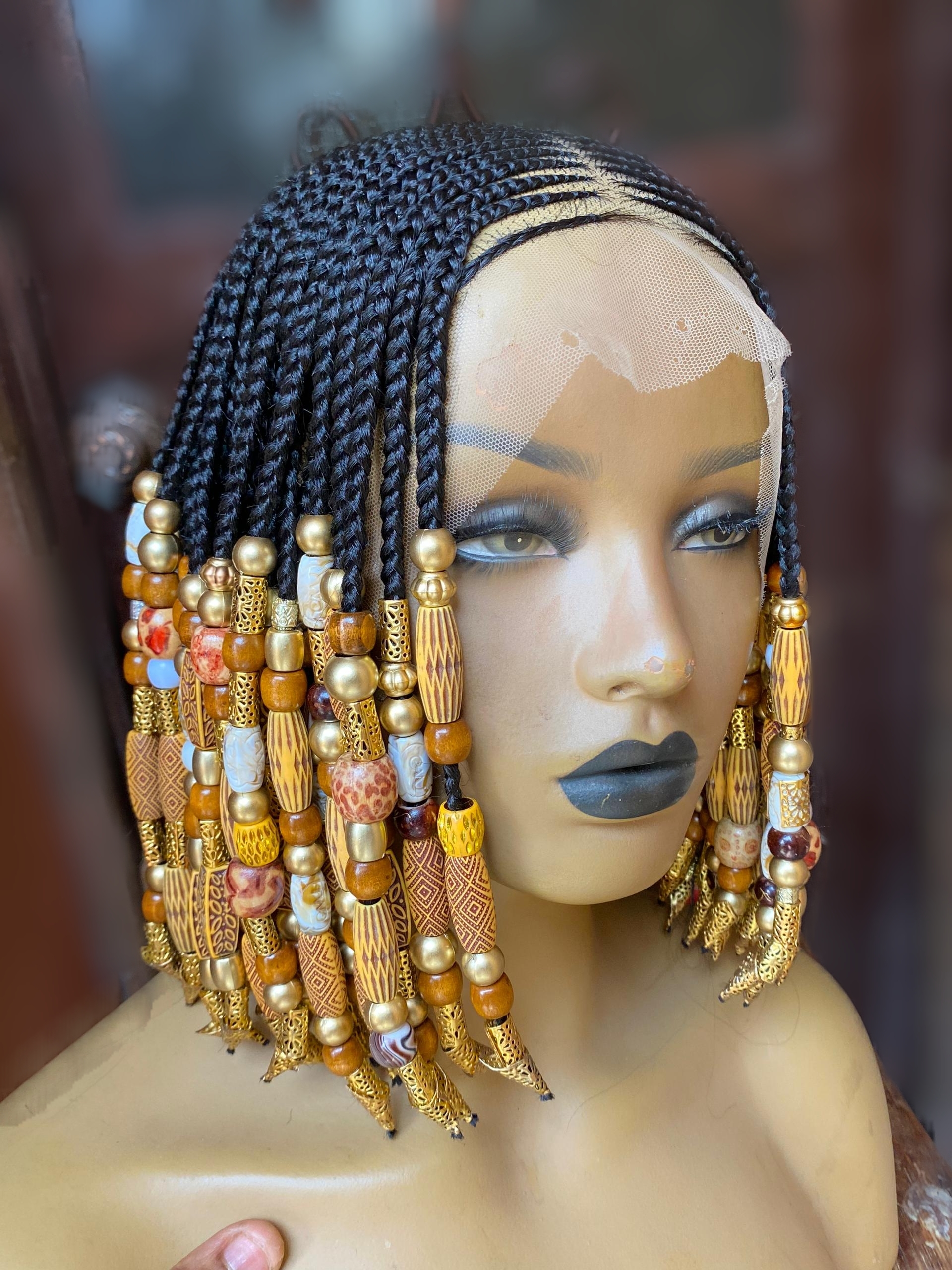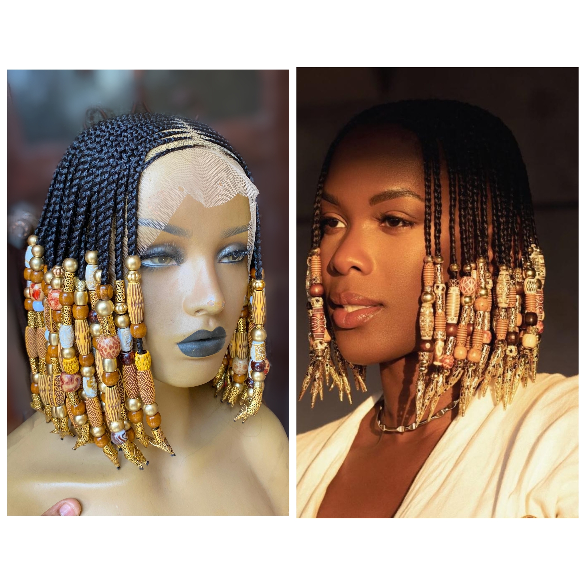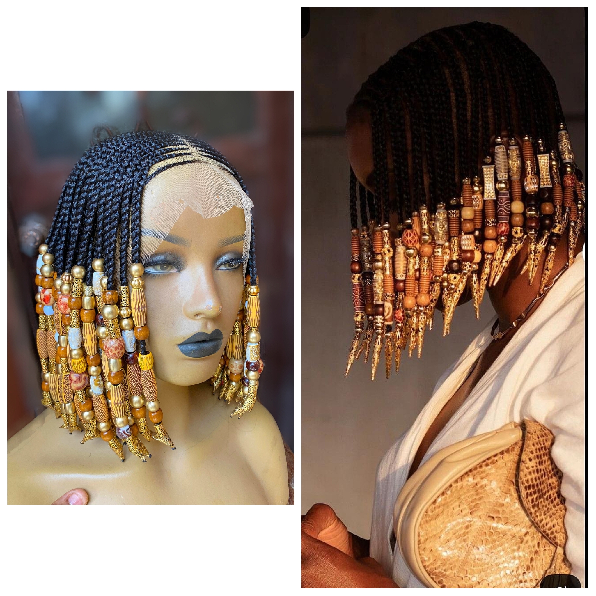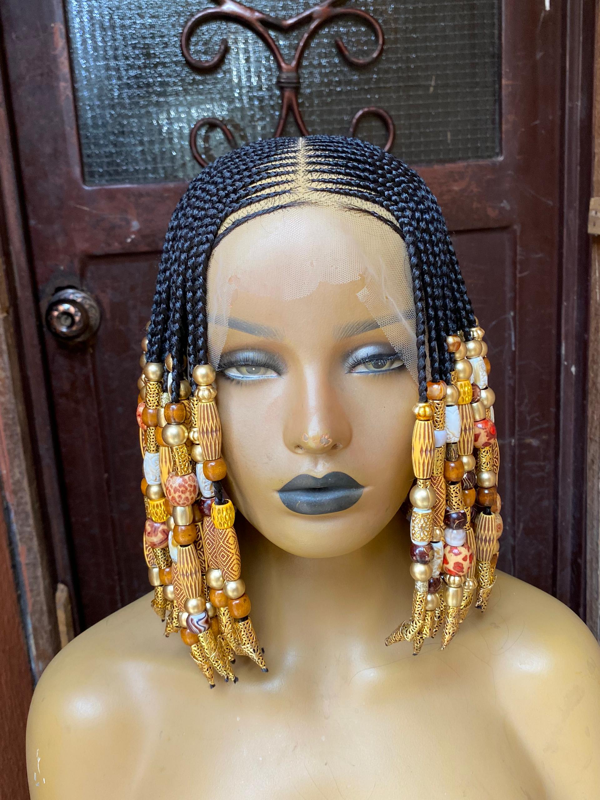 ​Intricate Detail: Every braid is meticulously crafted and adorned with premium, earthy-toned beads and gold accents for that royal finish.