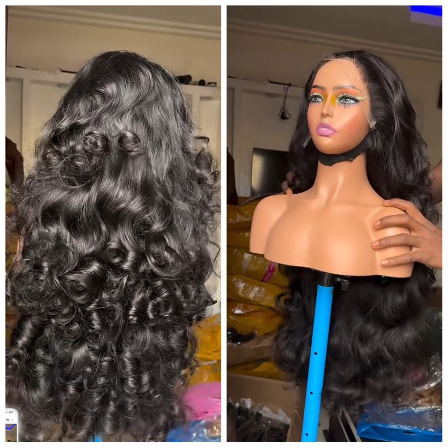 Cambodia Bounce Curls,Human Hair 28 Inches Black, HD Frontal