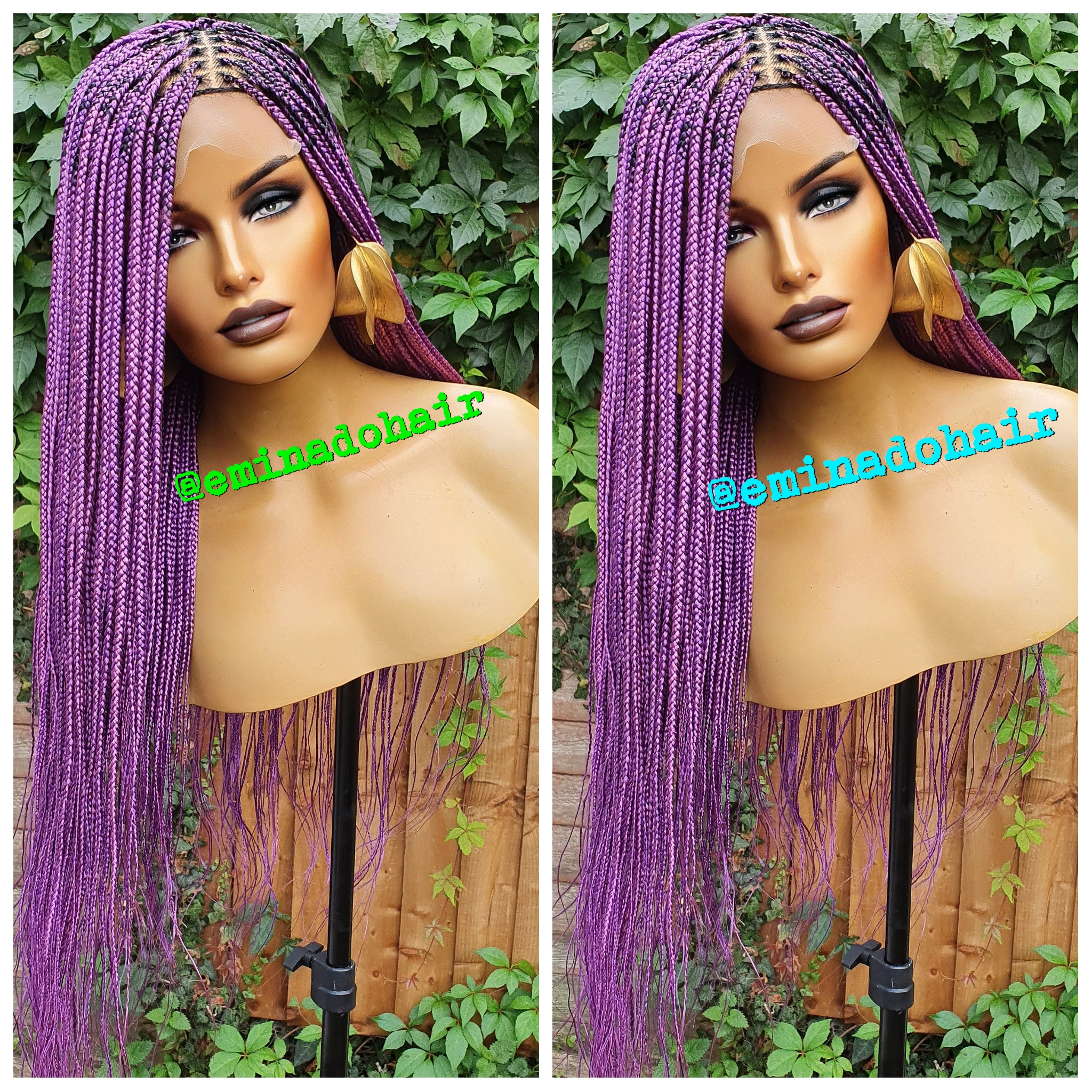 Knotless Braids Purple Pink Closure, 1 ready to ship